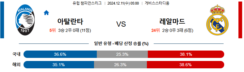 [킹콩티비]12월 11일 아탈란타 vs 레알 마드리드 UEFA 챔피언스리그 해외축구분석 생중계 무료중계 스포츠분석
