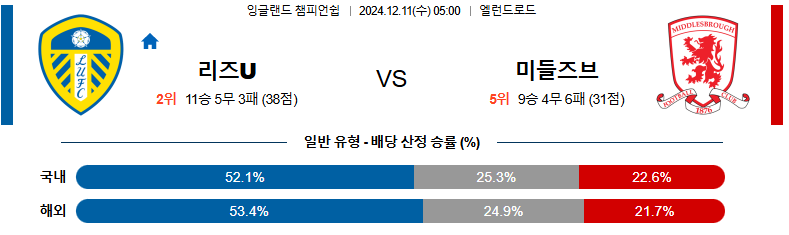 리즈 유나이티드 FC 미들즈브러 FC 축구분석