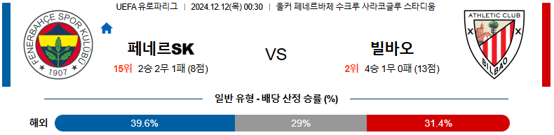 [킹콩티비]12월 12일 페네르바체 vs 빌바오 UEFA 유로파리그 해외축구분석 생중계 무료중계 스포츠분석