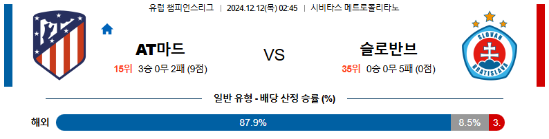 AT 마드리드 슬로반 브라티슬라바 축구분석