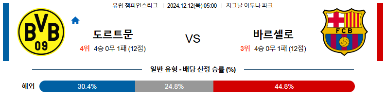 [킹콩티비]12월 12일 도르트문트 vs 바르셀로나 UEFA 챔피언스리그 해외축구분석 생중계 무료중계 스포츠분석