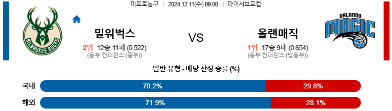[킹콩티비]12월 11일 밀워키 벅스 vs 올랜도 매직 NBA 미국프로농구분석 생중계 무료중계 스포츠분석