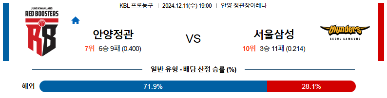 [킹콩티비]12월 11일 안양 정관장 vs 서울삼성 KBL 국내외농구분석 생중계 무료중계 스포츠분석