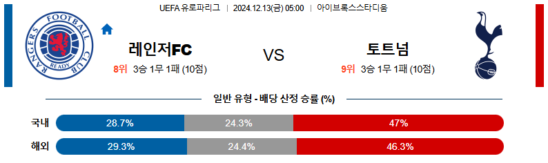 [킹콩티비]12월 13일 레인저스 vs 토트넘 UEFA 유로파리그 해외축구분석 생중계 무료중계 스포츠분석