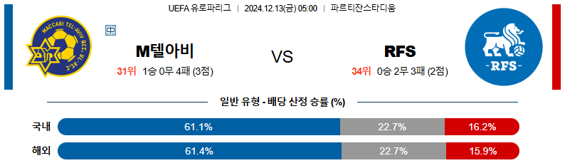 [킹콩티비]12월 13일 텔 아비브 vs RFS UEFA 유로파리그 해외축구분석 생중계 무료중계 스포츠분석