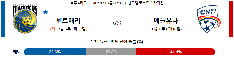 [킹콩티비]12월 13일 센트럴 코스트 vs 애들레이드 호주 1부 아시아축구분석 생중계 무료중계 스포츠분석