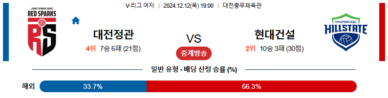 [킹콩티비]12월 12일 정관장 vs 현대건설 V-리그 (여) 국내배구분석 생중계 무료중계 스포츠분석