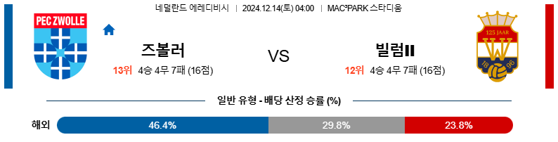 [킹콩티비]12월 14일 즈볼레 vs 빌렘 에레디비지에 해외축구분석 생중계 무료중계 스포츠분석