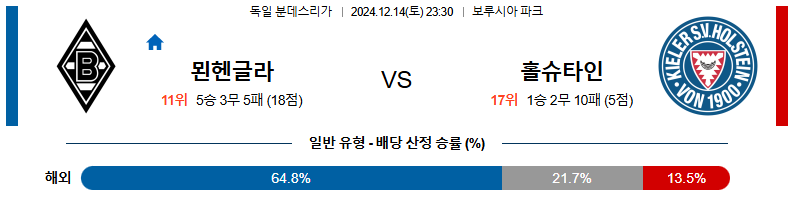 [킹콩티비]12월 14일 묀헨글라트바흐 vs 홀슈타인 킬 분데스리가 해외축구분석 생중계 무료중계 스포츠분석