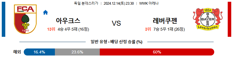 [킹콩티비]12월 14일 아우크스부르크 vs 레버쿠젠 분데스리가 해외축구분석 생중계 무료중계 스포츠분석