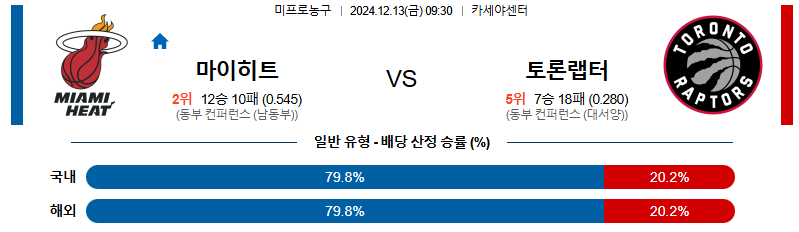 [킹콩티비]12월 13일 마이애미 히트 vs 토론토 랩터스 NBA 미국프로농구분석 생중계 무료중계 스포츠분석