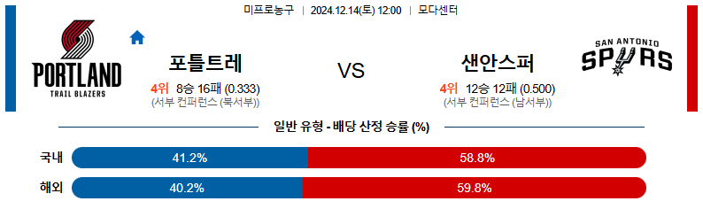 포틀랜드 트레일블레이저 샌안토니오 스퍼스 12월14일