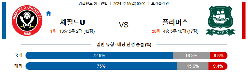 셰필드UTD 플리머스 12월15일