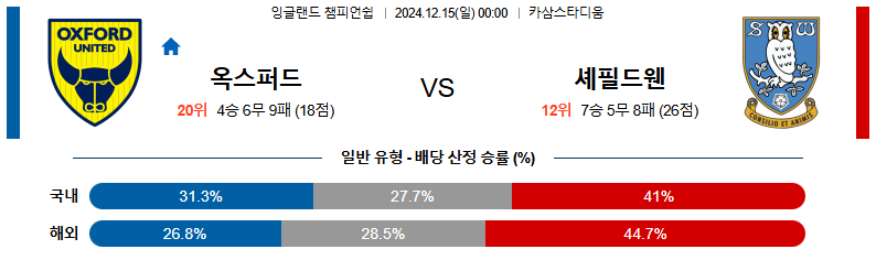 [킹콩티비]12월 15일 옥스퍼드 vs 셰필드WED 챔피언쉽 해외축구분석 생중계 무료중계 스포츠분석