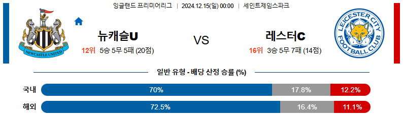 뉴캐슬 레스터시티 12월15일