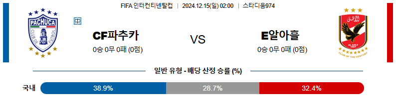 [킹콩티비]12월 15일 파추카 vs 알 아흘리 FIFA IC 해외축구분석 생중계 무료중계 스포츠분석