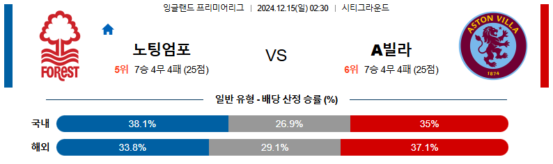 [킹콩티비]12월 15일 노팅엄 vs 아스톤 빌라 EPL 해외축구분석 생중계 무료중계 스포츠분석