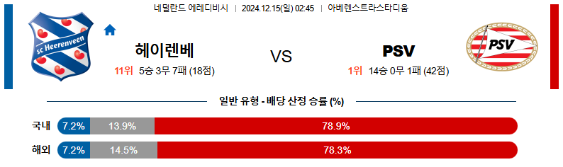 [킹콩티비]12월 15일 헤이렌베인 vs PSV 에레디비시 해외축구분석 생중계 무료중계 스포츠분석
