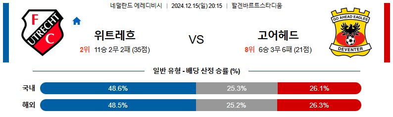 [킹콩티비]12월 15일 위트레흐트 vs 고어헤드 에레디비지에 해외축구분석 생중계 무료중계 스포츠분석