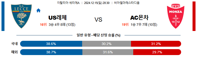 [킹콩티비]12월 15일 레체 vs 몬차 세리에 A 해외축구분석 생중계 무료중계 스포츠분석