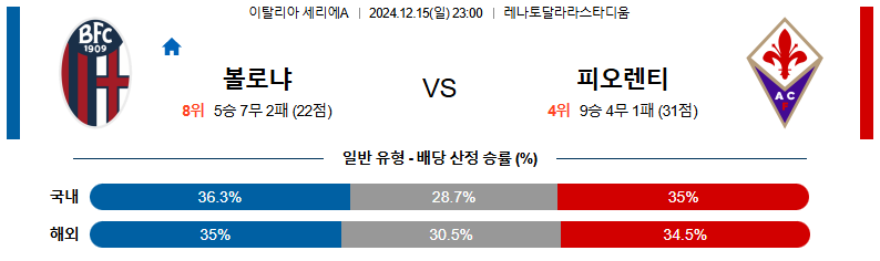 [킹콩티비]12월 15일 볼로냐 vs 피오렌티나 세리에 A 해외축구분석 생중계 무료중계 스포츠분석