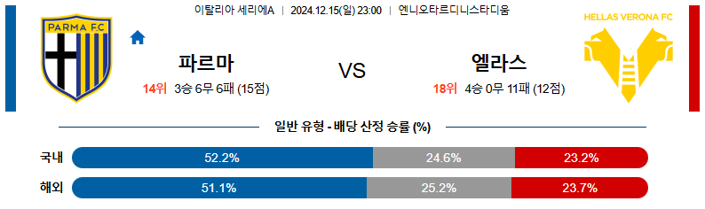 [킹콩티비]12월 15일 파르마 vs 엘라스 베로나 세리에 A 해외축구분석 생중계 무료중계 스포츠분석