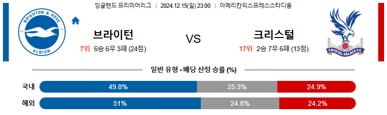 브라이턴 & 호브 앨비언 크리스탈 팰리스 축구분석
