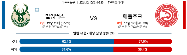 밀워키 벅스 애틀랜타 호크스 12월15일