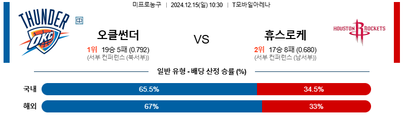 [킹콩티비] 12월 15일 오클라호마시티 썬더 vs 휴스턴 로켓츠 NBA 미국프로농구분석 생중계 무료중계 스포츠분석