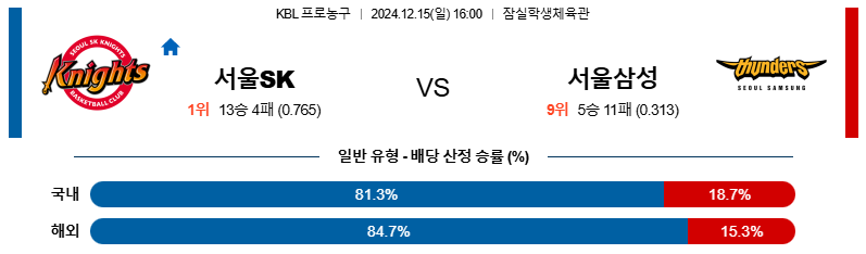 [킹콩티비] 12월 15일 서울SK vs 서울삼성 KBL 국내외농구분석 생중계 무료중계 스포츠분석