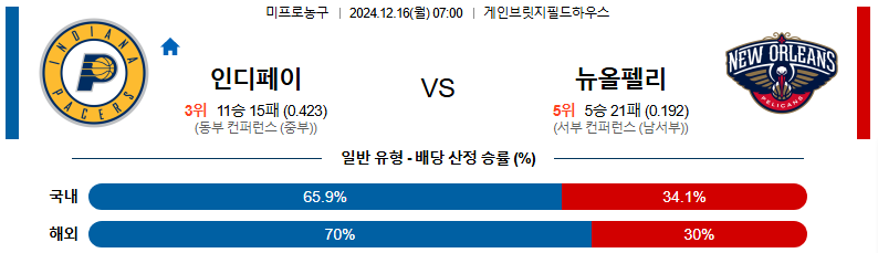 인디애나 대 뉴올리언스 NBA 12월16일 맞대결 생중계, 스포츠중계, 스포츠분석
