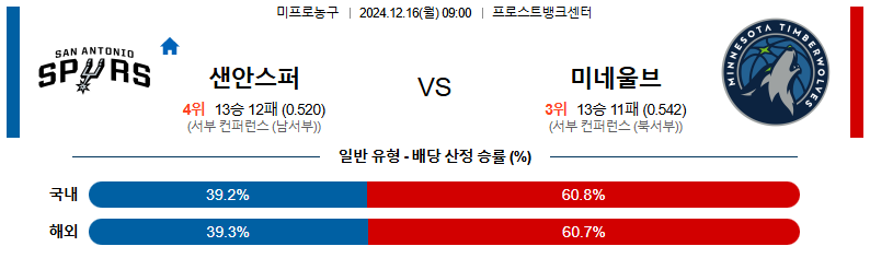 샌안토니오 대 미네소타 NBA 12월16일 맞대결 생중계, 스포츠중계, 스포츠분석