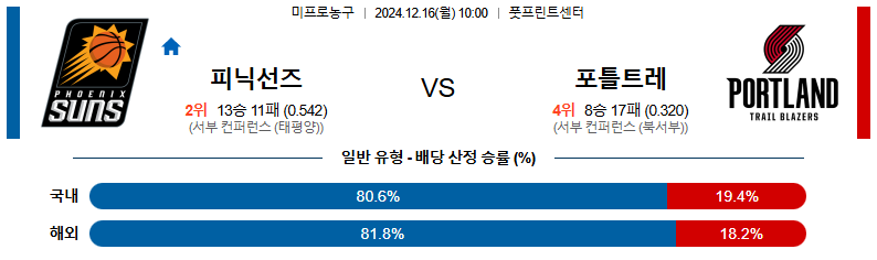 피닉스 대 포틀랜드 NBA 12월16일 맞대결 생중계, 스포츠중계, 스포츠분석