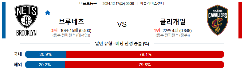 브루클린 대 클리블랜드 NBA 12월17일 맞대결 생중계, 스포츠중계, 스포츠분석