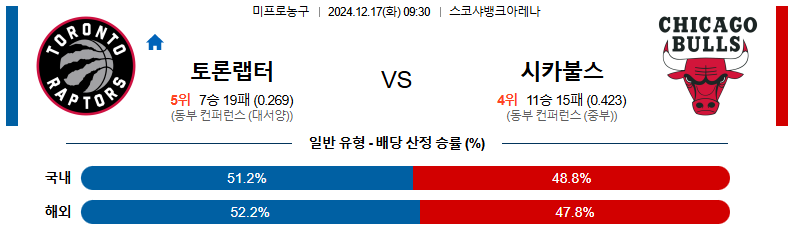 토론토 대 시카고 NBA 12월17일 맞대결 생중계, 스포츠중계, 스포츠분석