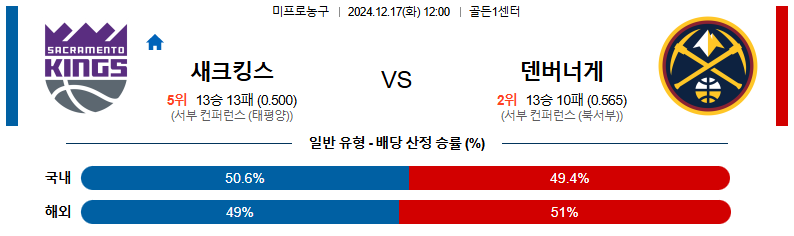 새크라멘토 대 덴버너게츠 NBA 12월17일 맞대결 생중계, 스포츠중계, 스포츠분석