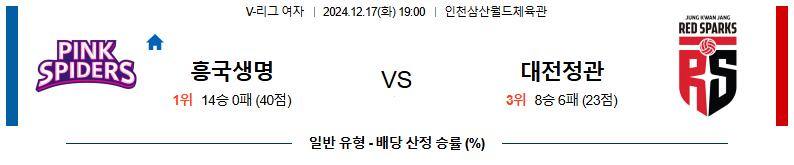 흥국생명 대 정관장 V리그(여) 12월17일 맞대결 생중계, 스포츠중계, 스포츠분석