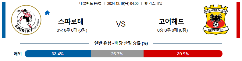스파르타 대 고어헤드 네덜란드FA컵 12월19일 맞대결 생중계, 스포츠중계, 스포츠분석