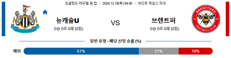 뉴캐슬 대 브렌트포드 잉글랜드EFL컵 12월19일 맞대결 생중계, 스포츠중계, 스포츠분석