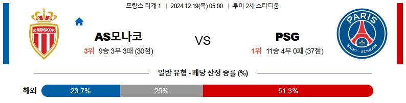 모나코 대 PSG 리그앙 12월19일 맞대결 생중계, 스포츠중계, 스포츠분석