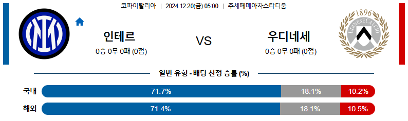 인터밀란 대 우디네세 코파이탈리아 12월20일 맞대결 생중계, 스포츠중계, 스포츠분석