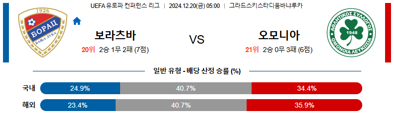 바냐루카 대 오모니아 UEFA컨퍼런스리그 12월20일 맞대결 생중계, 스포츠중계, 스포츠분석
