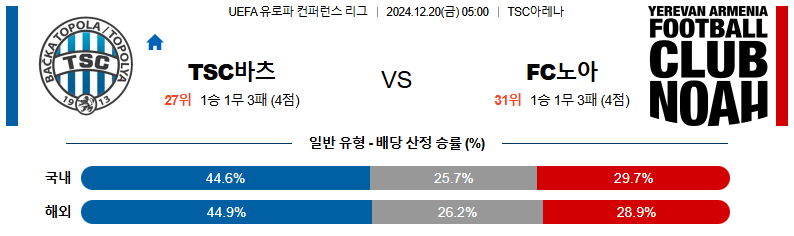 토폴라 대 노아 UEFA컨퍼런스리그 12월20일 맞대결 생중계, 스포츠중계, 스포츠분석
