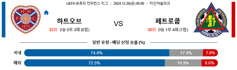 하츠 대 페트로쿱 UEFA컨퍼런스리그 12월20일 맞대결 생중계, 스포츠중계, 스포츠분석