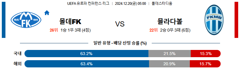 몰데 대 볼레슬라프 UEFA컨퍼런스리그 12월20일 맞대결 생중계, 스포츠중계, 스포츠분석