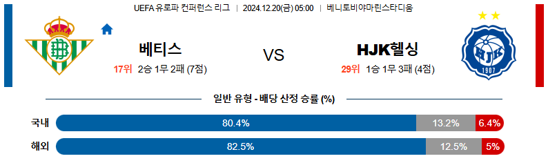베티스 대 헬싱키 UEFA컨퍼런스리그 12월20일 맞대결 생중계, 스포츠중계, 스포츠분석