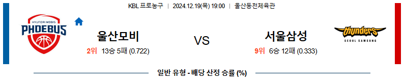 울산현대모비스피버스 대 서울삼성 KBL 12월19일 맞대결 생중계, 스포츠중계, 스포츠분석