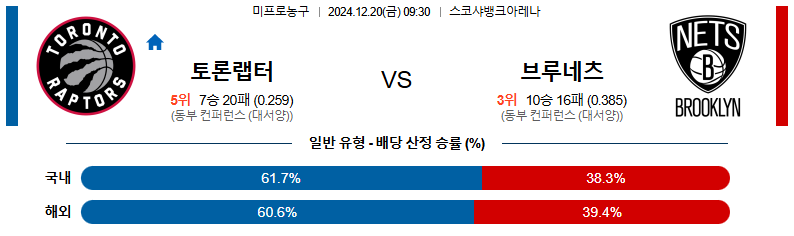 토론토 대 브루클린 NBA 12월20일 맞대결 생중계, 스포츠중계, 스포츠분석