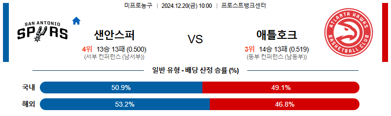 샌안토니오 대 애틀란타 NBA 12월20일 맞대결 생중계, 스포츠중계, 스포츠분석