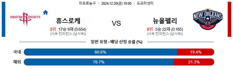 휴스턴 대 뉴올리언스 NBA 12월20일 맞대결 생중계, 스포츠중계, 스포츠분석